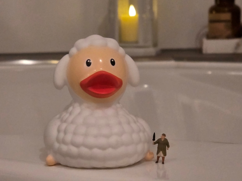 Noch ist Gerda ganz entzückt darüber, einen weiteren Mitbewohner kennengelernt zu haben. Sie ahnt nicht im Geringsten, dass sie gleich mit mir und dem Entchen in ein Schaumbad entführt wird.