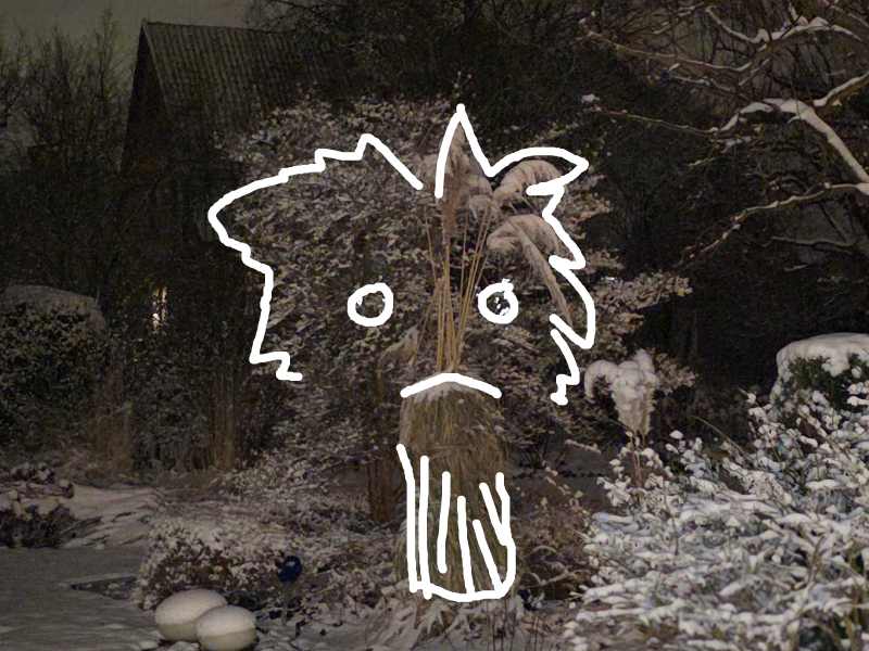 Eigentlich wollte ich nur mal gucken, was der Schnee so macht. Da sah ich vor mir im Garten zwei Augen und herunter hängende Mundwinkel...